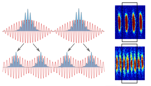 We report the realization of two Mach–Zehnder interferometers operating in parallel with Bose–Einstein condensates trapped in two neighboring double-well potentials, implemented using Beat-Note Superlattices with large spatial periodicities. Both the splitting and recombination operations between the two interferometer modes are performed with the atoms fully trapped, exploiting tunneling through the central barrier. This is made possible by tuning the scattering length of potassium atoms to zero via a broad Feshbach resonance. Our system constitutes the first experimentally realized trapped-atom gradiometer and represents a promising platform for fundamental physics tests and high–spatial–resolution force measurements. T. Petrucciani et al. |